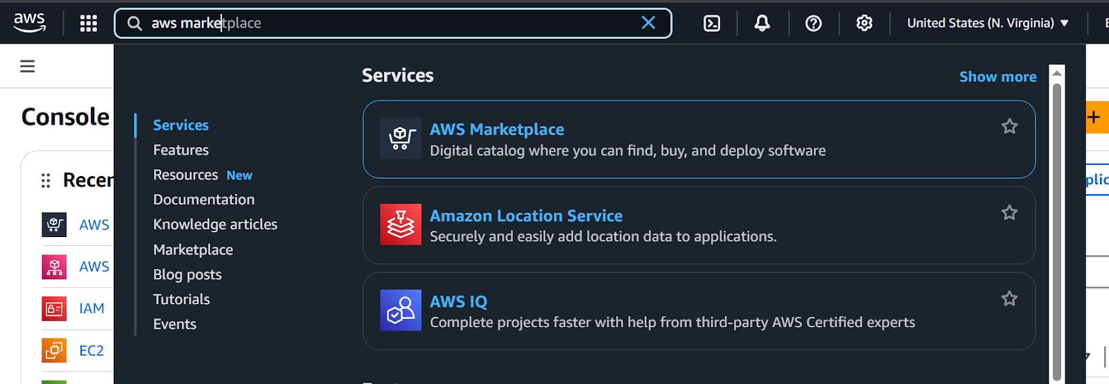Search for AWS Marketplace in the search bar. Click on AWS Marketplace