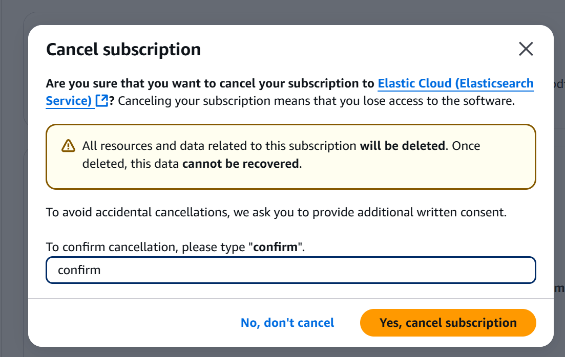 4. Confirm cancellation, then click Yes and the cancel subscription button