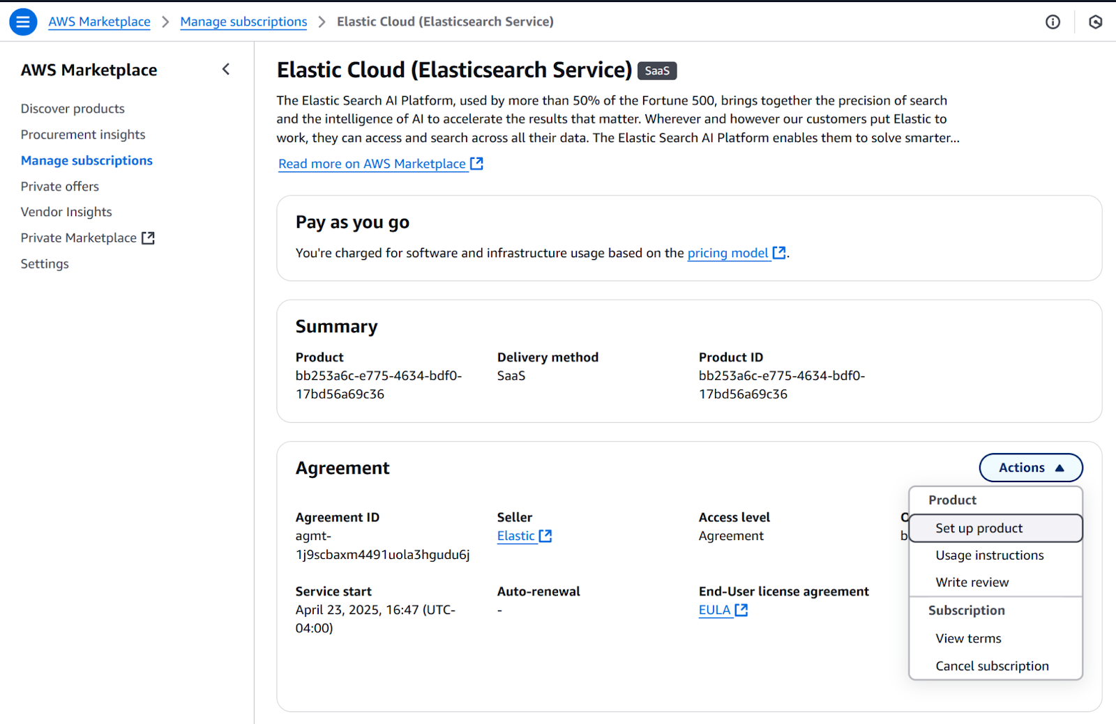 We are going to use Elastic Cloud Service on AWS, which is the official managed Elasticsearch service that simplifies deployment and orchestration of all the Elastic Stack components through AWS's native infrastructure.