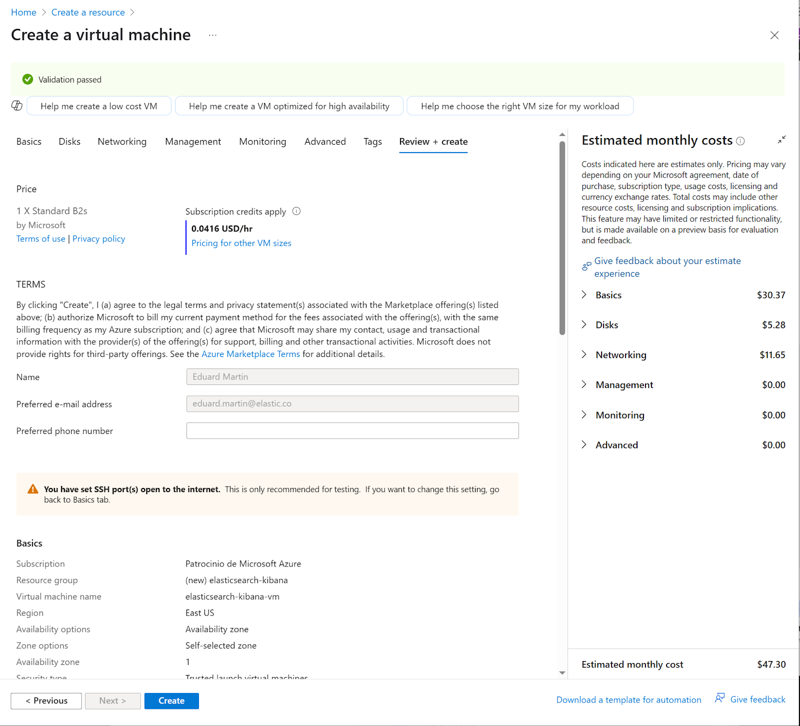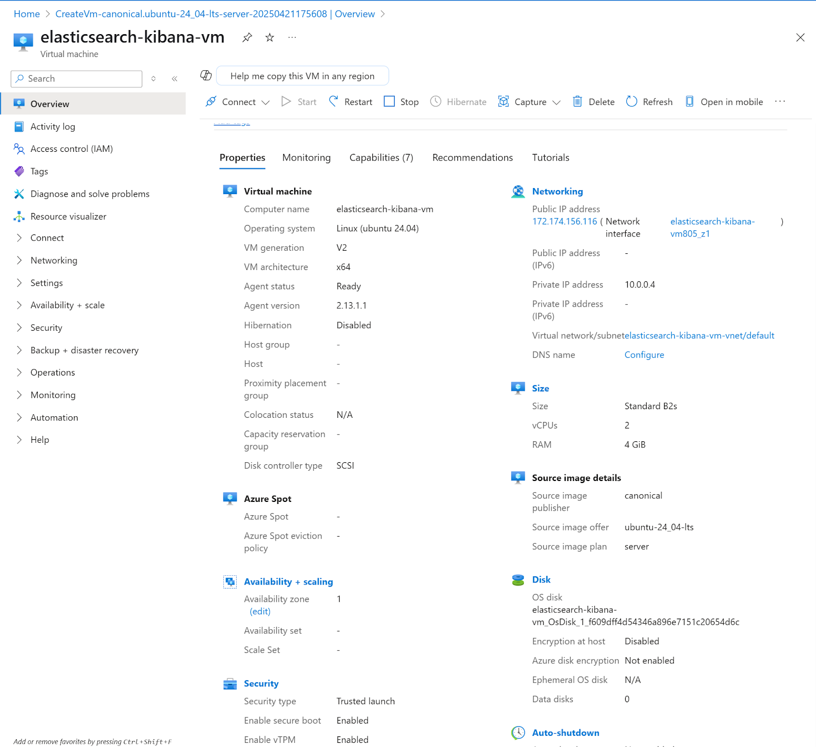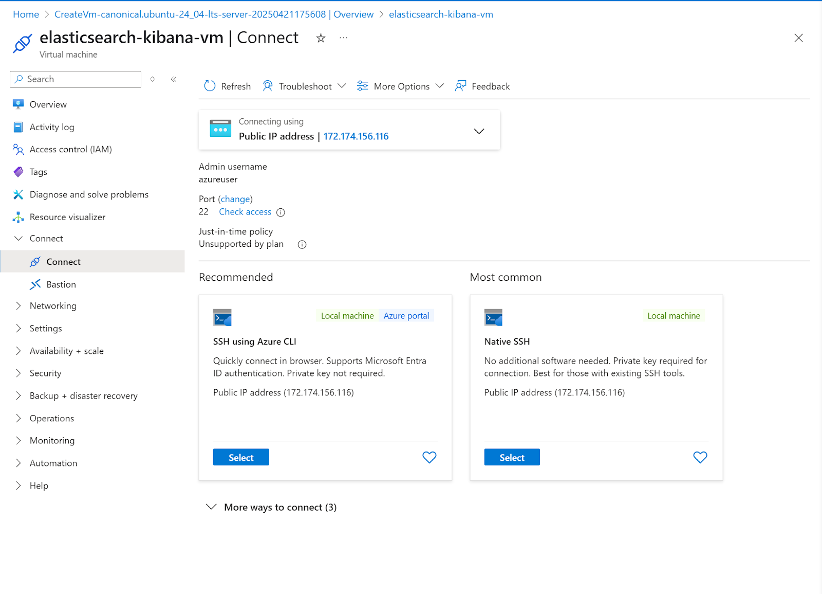 After completing these steps, you'll have a working Elasticsearch deployment with Kibana running on an Azure virtual machine. This setup gives you full control over your environment while leveraging the Azure infrastructure.
