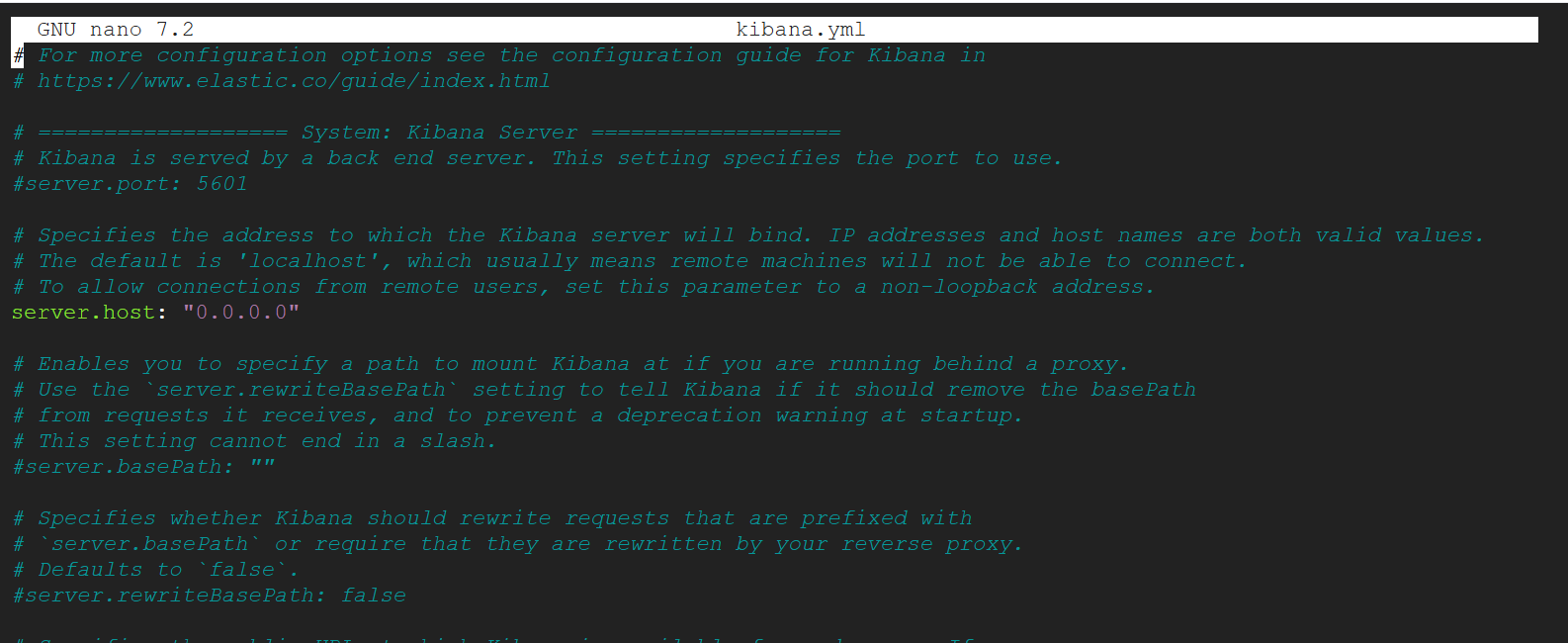 nano ./config/kibana.ymlLook for the server.host setting and set it to: