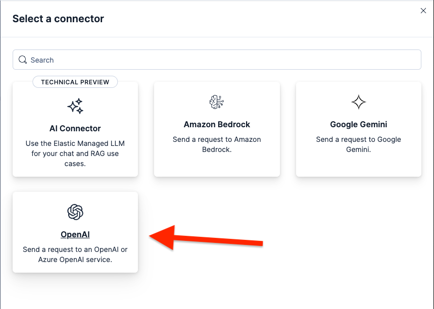 This will open the AI Assistant UI, where we need to configure a GenAI connector to allow our application to connect to a supported LLM provider.