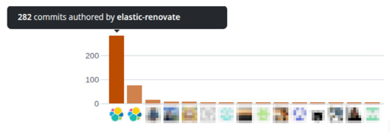 In about six months of operation, Renovate authored pull -requests have already bumped 41% of our dependencies, becoming one of our most prolific contributors: