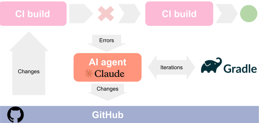 - Give it the agency to run and iterate over failed Gradle steps until a solution is found or it desists.