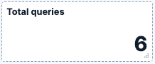 Total queries: A simple document count of the index to show how many queries have been received in total. This shows the big picture and answers the question of how many total queries we had in the selected time window.