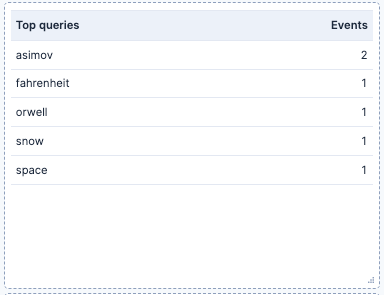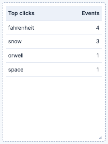 Top clicks: A table with a count of the number of events split by the query they come from. It uses a Top values function on the user_query.keyword