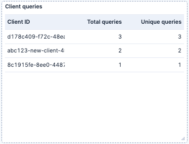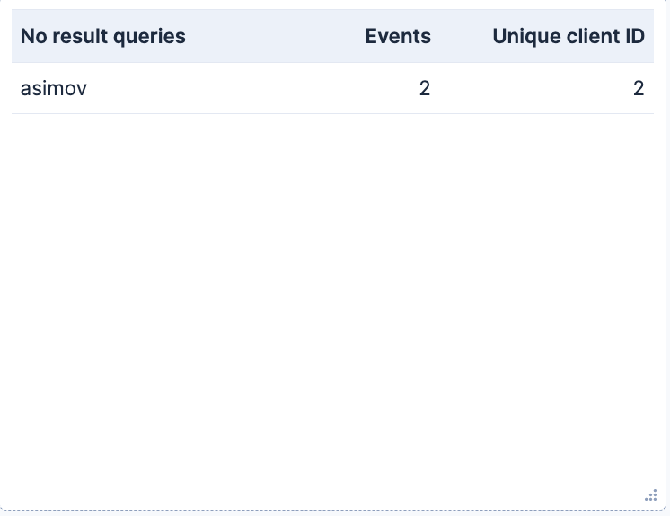 that didn’t match any document, and a Unique Count of the field client_id. This can be very useful to determine what products our website is lacking. For example, in an e-commerce book store, seeing regular searches for a particular book title could lead us to buy copies to sell. Alternatively, it can also indicate shortcomings in our search implementation, for example, if people are using question-based searches that align better with semantic search approaches.