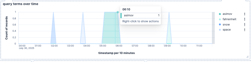 Query terms over time: Similar to the last one, but broken down by the user_query.keyword