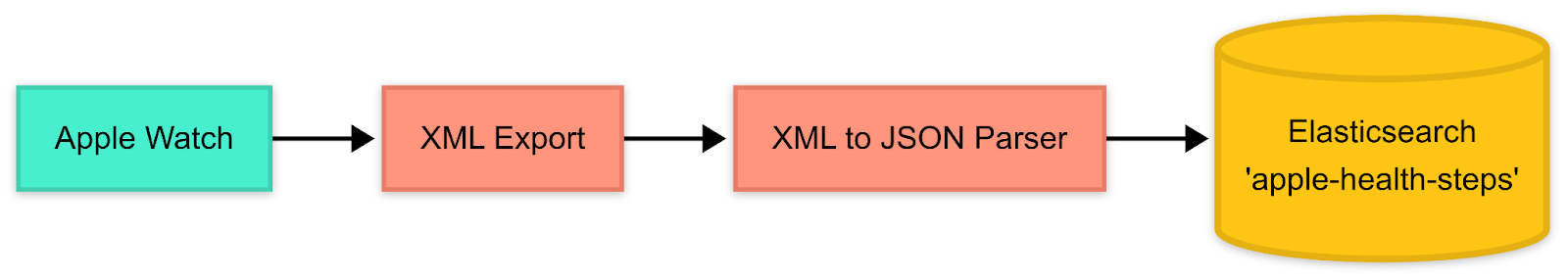 Final check: The index 'apple-health-steps' now contains 68 documents.After the script executes, we'll have the index created and populated with sample data. The index follows this schema, which corresponds to the fields obtained when exporting the XML file with the steps data from Apple Watch: