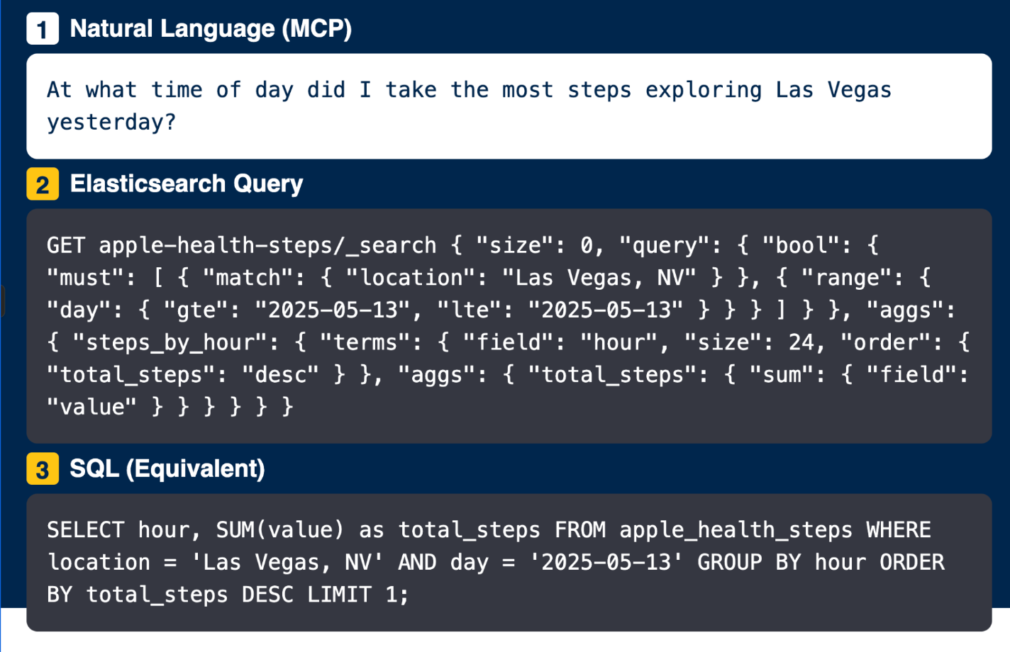 In this blog, we explored how to create an MCP server that integrates Apple HealthKit data with LLM agents, using FastMCP and Elasticsearch. We’ve also shown how to locally test our server using MCP Inspector and Claude Desktop. The code is available here.