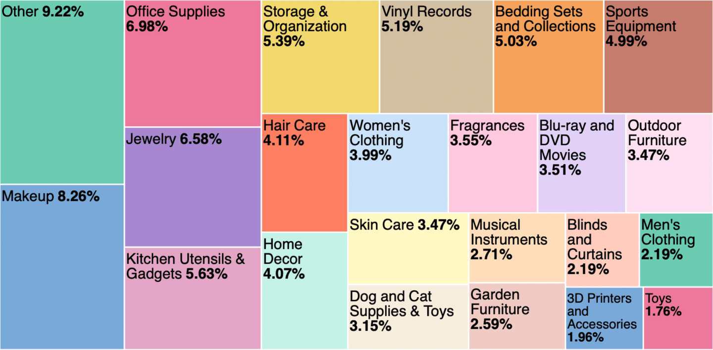 Treemap visualization - top 22 values of category.keyword (product categories)