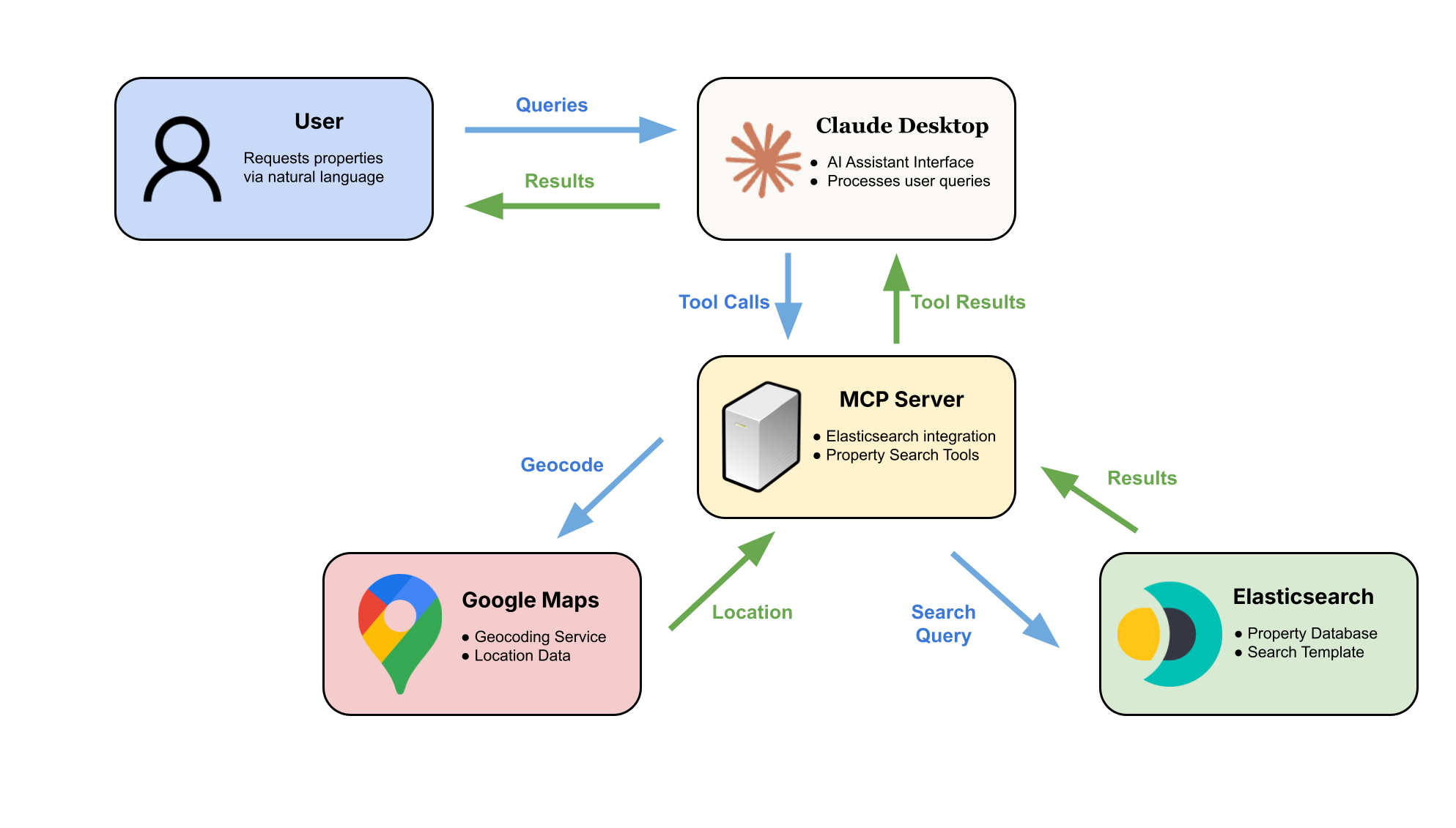 We've now adapted this proven approach to work within the MCP framework, and the improvements have been substantial. In this blog post, we'll walk through a practical example using a Python MCP server that demonstrates effective property search by combining MCP with Elasticsearch search templates, all orchestrated through an LLM.