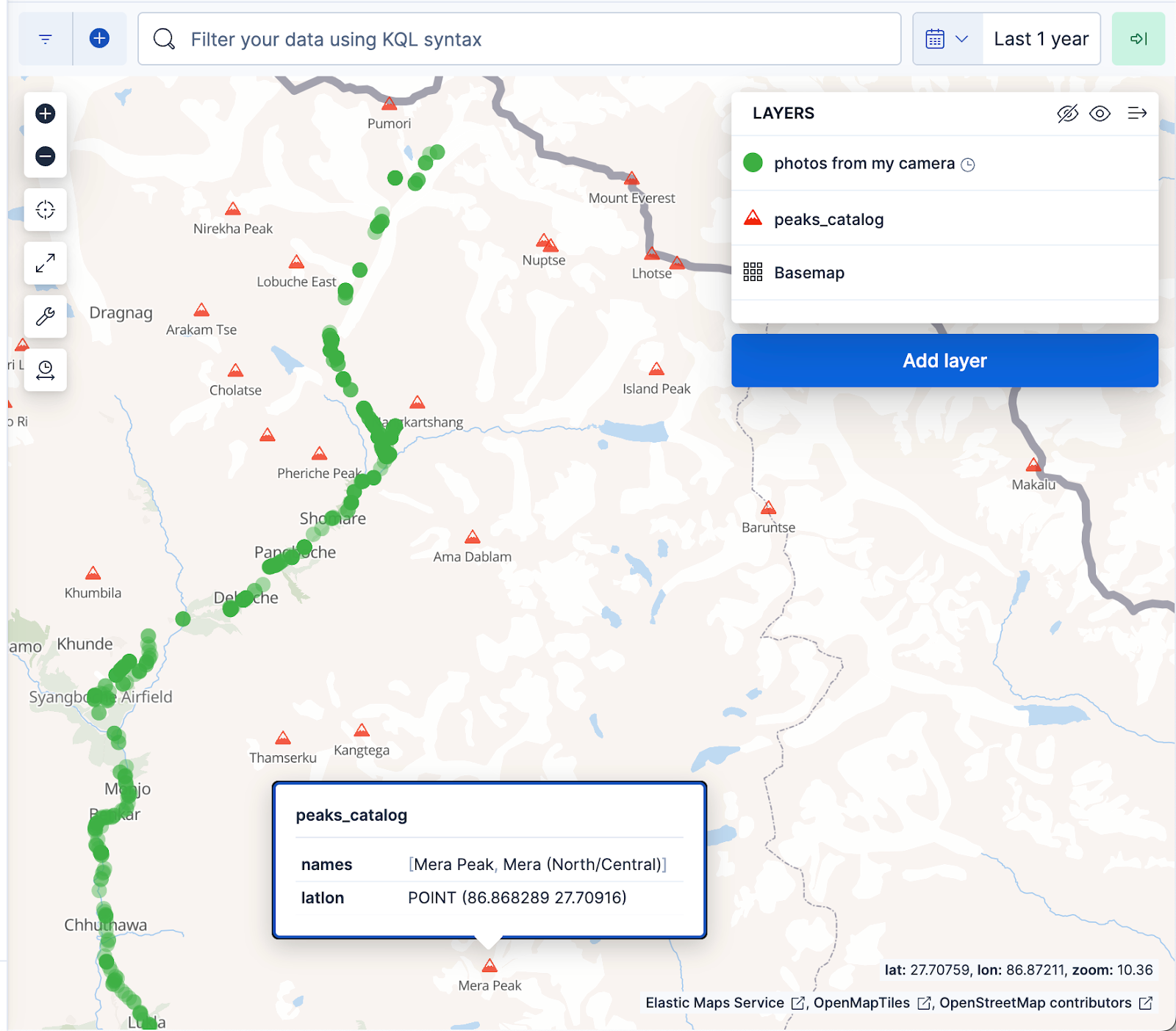 What started as can we just see the Ama Dablam pictures? turned into a small, working multimodal search system. We took raw trek photos, turned them into SigLIP-2 embeddings, and used Elasticsearch to do fast kNN over vectors, plus simple geo/time filters to surface the right images by meaning. Along the way, we separated concerns with two indices: a tiny peaks_catalog of blended prototypes (for identification) and a scalable photos index of image vectors and EXIF (for retrieval). It’s practical, reproducible, and easy to extend.