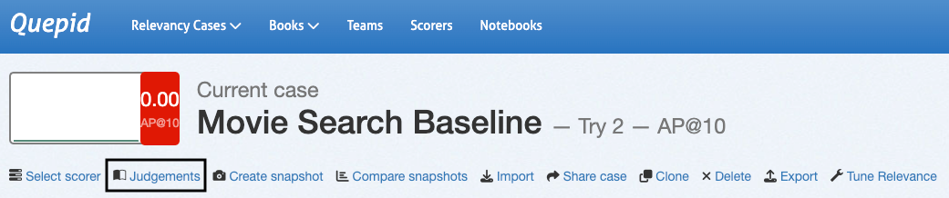 Once judgement lists are available, leveraging the judgements and calculating search quality metrics is a natural progression. Quepid automatically calculates the configured metric for the current case when judgements are available. Metrics are implemented as “Scorers” and you can provide your own when the supported ones do not include your favorite!
