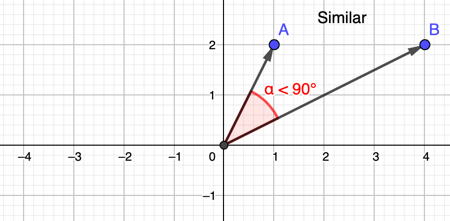 Remember that in order for two vectors to be considered similar, their angle must be as acute as possible, ideally nearing a angle, which would boil down to a perfect similarity of . In other words, when vectors are...