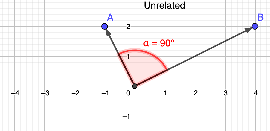 - ...unrelated, the cosine of their angle nears (i.e., close to )